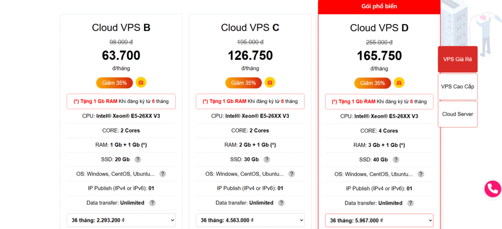 • VPS/Cloud VPS → chọn BKHOSTVPS20 hoặc đăng ký dài hạn 36 tháng để giảm tới 25%.