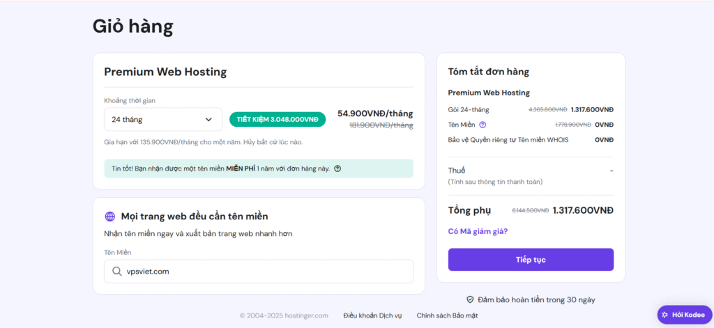 Hướng dẫn sử dụng mã giảm giá Hostinger