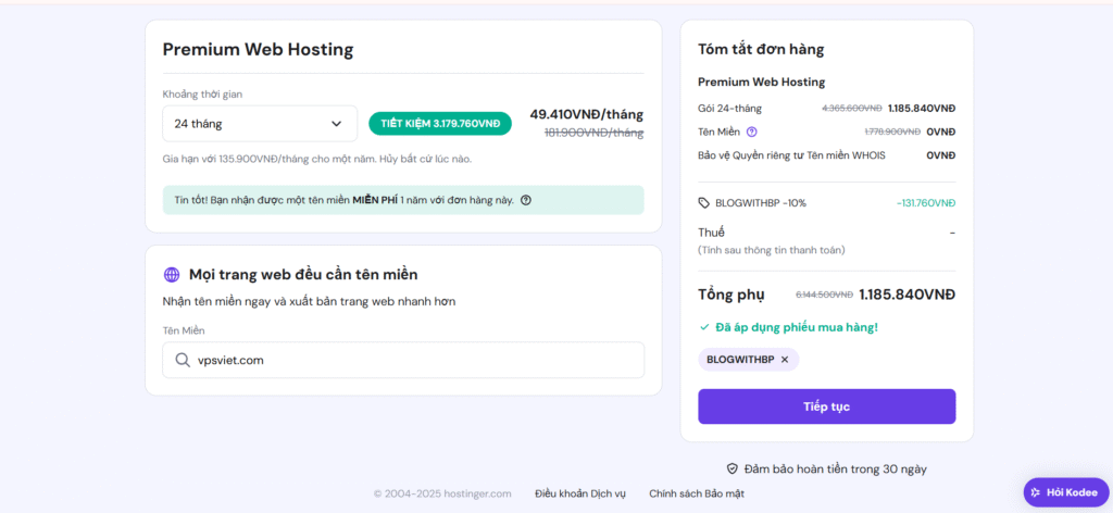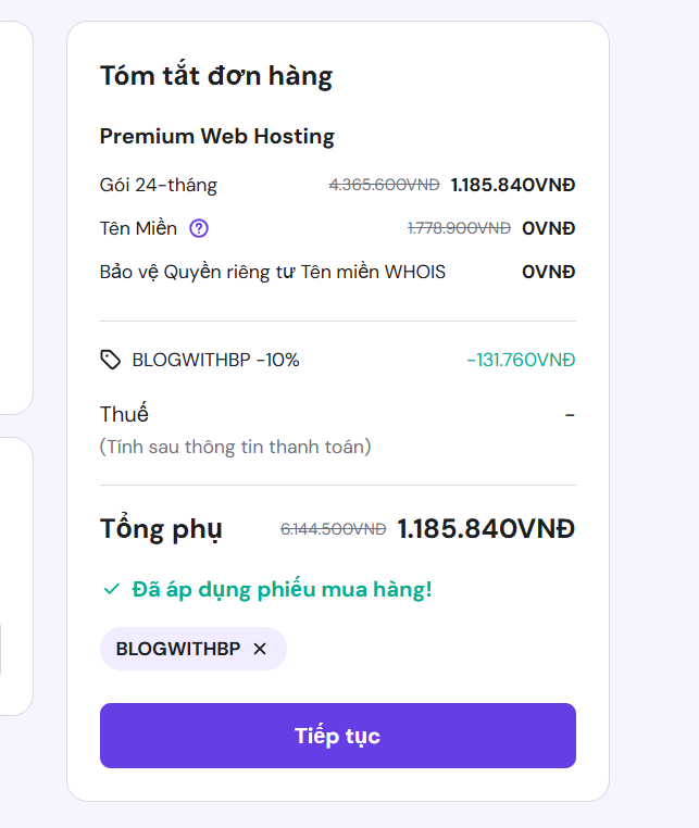 - Muốn giảm sâu nhất → Dùng BLOGWITHBP (giảm tới 90% tất cả gói Hosting).
