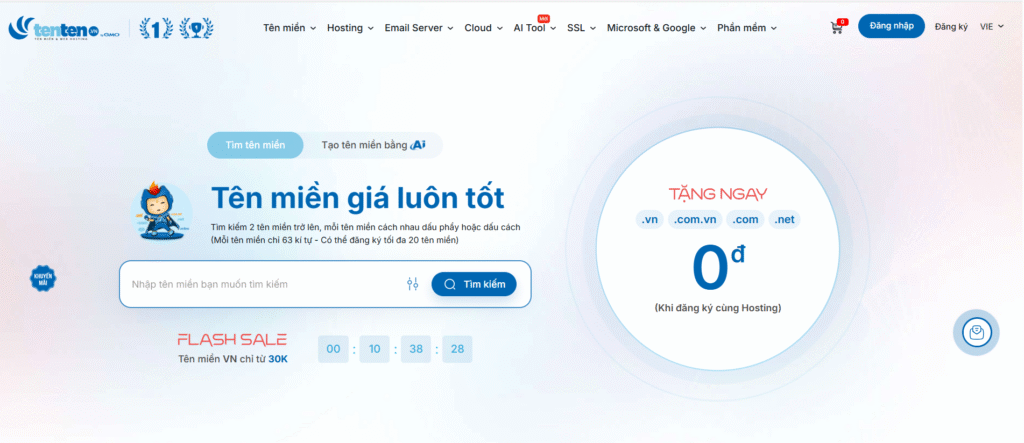 - Nếu tập trung vào tên miền → săn .COM chỉ từ 193K, .NET từ 314K, hoặc đăng ký nhiều năm để giảm thêm 300K–500K.