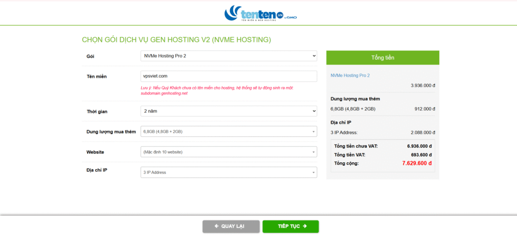 - Tên miền: lựa chọn từ .VN, .COM, .NET, .SHOP…