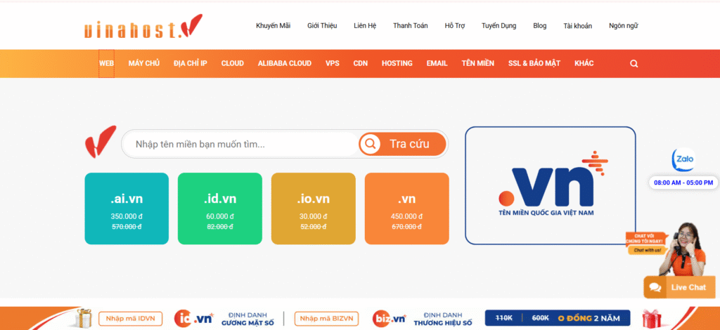 Với hạ tầng mạnh mẽ, dịch vụ đa dạng và các chương trình giảm giá hấp dẫn, VinaHost là lựa chọn đáng tin cậy cho mọi cá nhân và doanh nghiệp khi triển khai website, hệ thống trực tuyến hay chuyển đổi số.