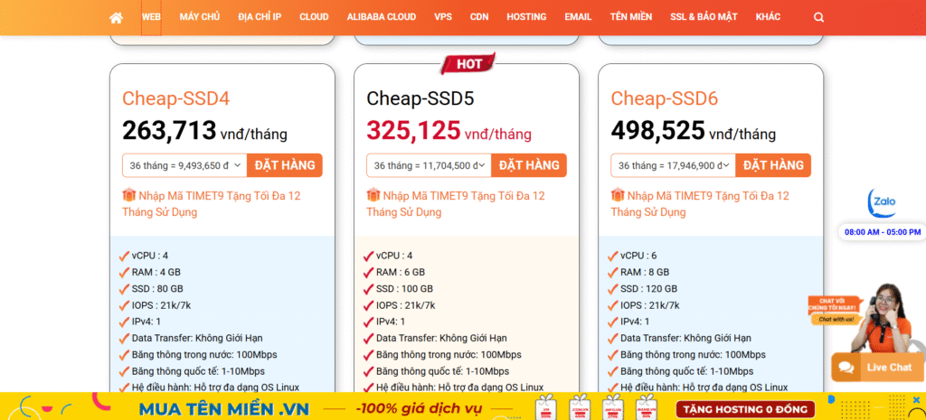 • TIMET9 – Khi mua Hosting/VPS/Email theo chu kỳ dài hạn, khách hàng được tặng thêm thời gian sử dụng: