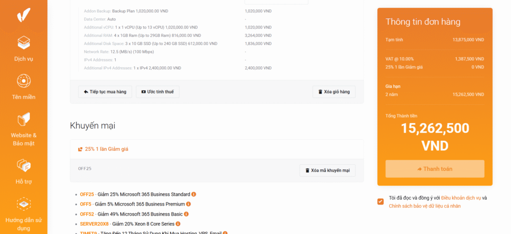 • V15 – Giảm 15% cho các gói VPS từ gói 1 → gói 3.