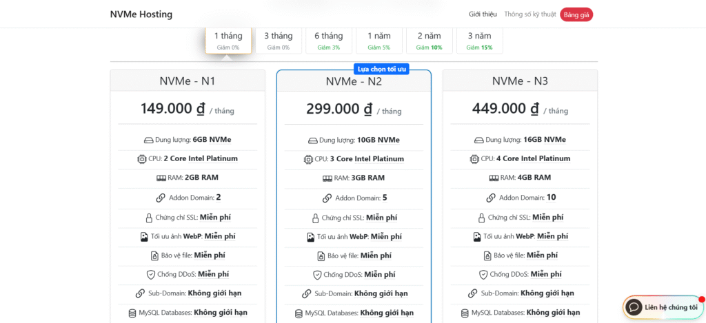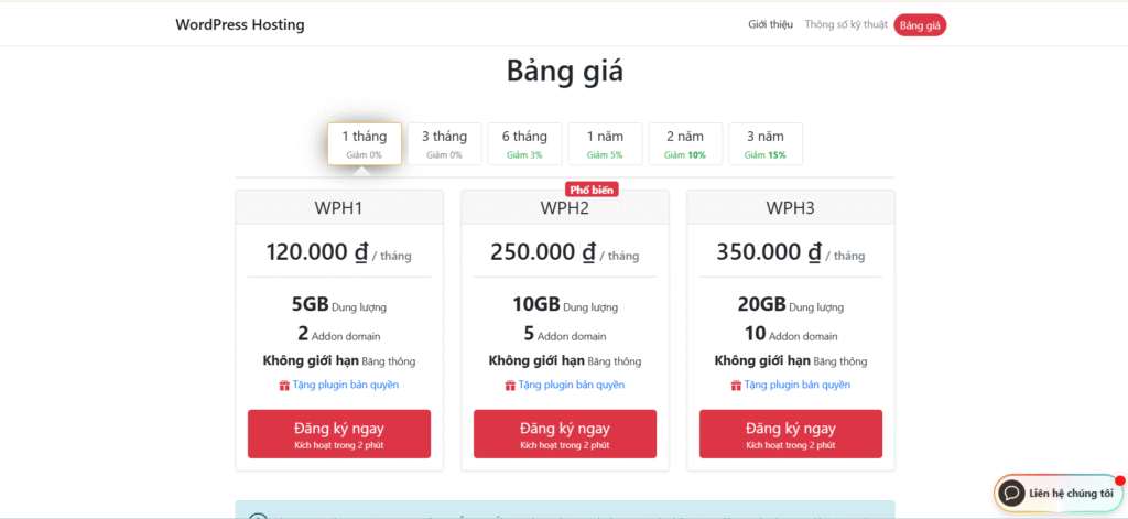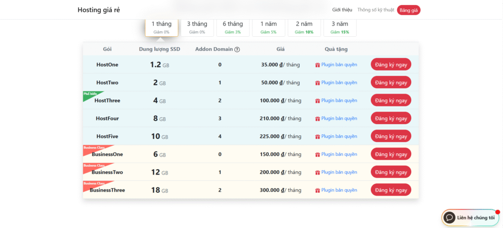 - Bảng giá tham khảo: từ 239.000đ/tháng → 2.500.000đ/tháng