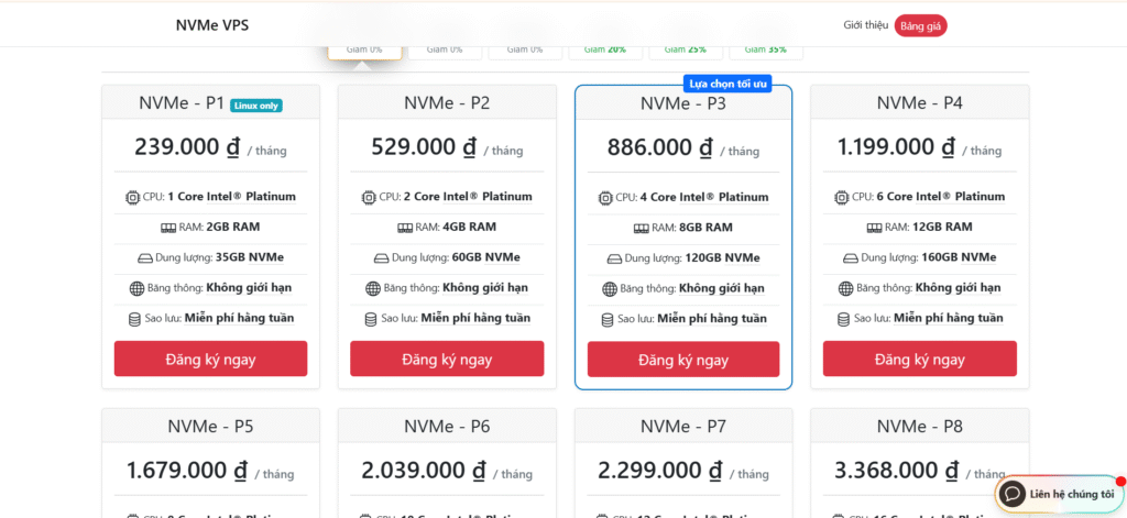 - NVMe VPS → Dành cho website TMĐT, dịch vụ SaaS, doanh nghiệp vừa & lớn cần hiệu năng mạnh và tốc độ xử lý cao.