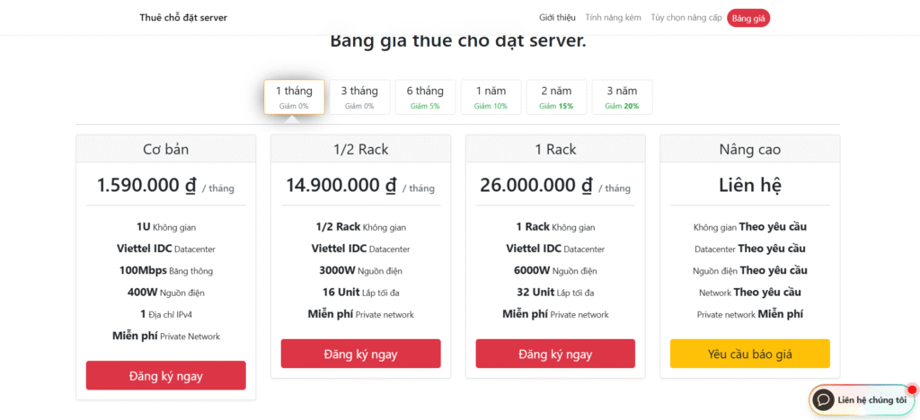 - Đối tượng phù hợp: Doanh nghiệp đã đầu tư server riêng, cần chỗ đặt tại datacenter đạt chuẩn ISO, bảo mật cao.