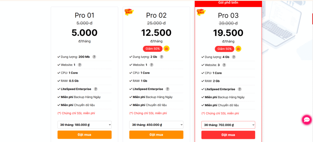 | Hạ tầng hiện đại, chuẩn Tier IIIĐảm bảo uptime 99,9%, tốc độ mạng 10Gbps ổn định. | Một số gói Hosting giá rẻ có dung lượng thấp (200MB – 2GB). |