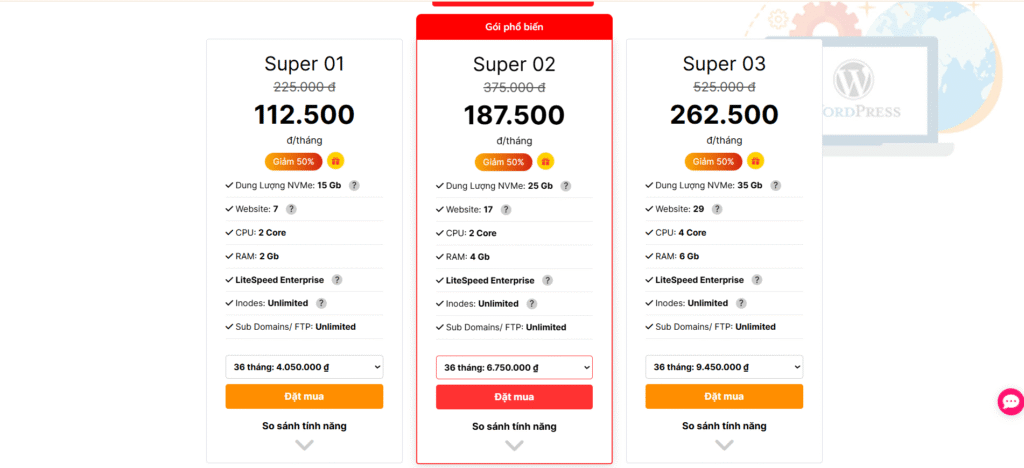 | Công nghệ tiên tiếnSử dụng CPU Intel Xeon E5 / Xeon Gold, SSD NVMe Enterprise, LiteSpeed Enterprise. | Backup tự động bị giới hạn ở một số gói VPS giá rẻ. |