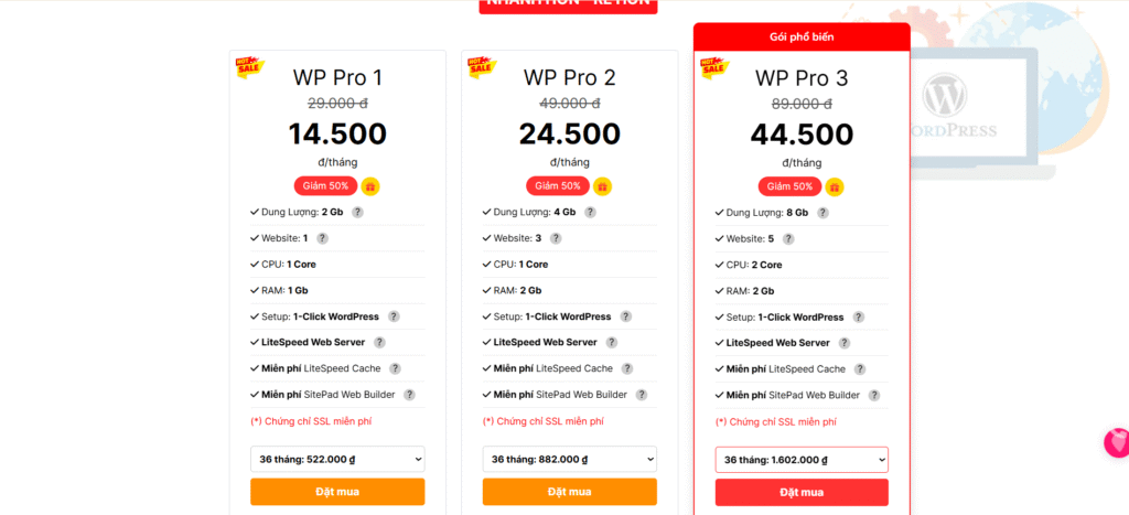 | Giá thành hợp lý, tiết kiệm chi phí | Không có SSD NVMe, tốc độ kém hơn gói cao cấp |