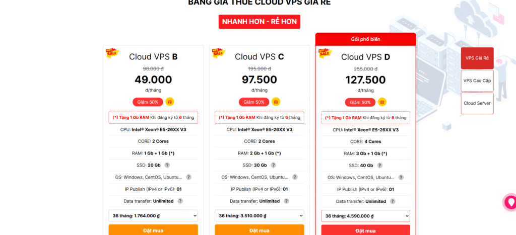 | Hỗ trợ chống DDoS, nâng cấp linh hoạt | Tài nguyên CPU, RAM hạn chế ở gói thấp |