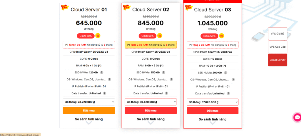 - Giá các gói Cloud Server và Dedicated Server cao hơn một số nhà cung cấp khác.