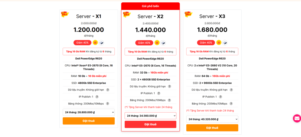 - Ổ cứng: SSD Enterprise NVMe 120GB – 500GB