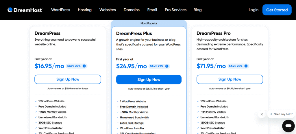 - DreamHost nổi bật về giá cả, hỗ trợ 24/7 và uptime cao, phù hợp với người dùng cá nhân, startup nhỏ hoặc nhà phát triển.