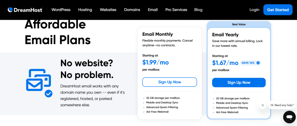 | Bảo mật cao, chống spam, tích hợp dễ với hosting. | Giao diện quản lý không phải là cPanel, cần làm quen với DreamHost Email panel. |