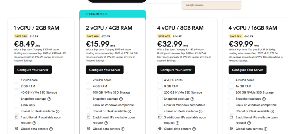 - Giá khởi điểm: khoảng $6,99/tháng (~170.000 ₫/tháng) cho gói thấp nhất.
