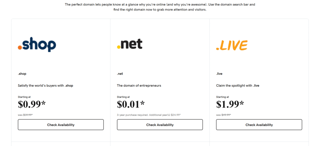 GoDaddy là một trong những nhà cung cấp dịch vụ hosting & tên miền lớn nhất thế giới, mang đến giải pháp toàn diện: đăng ký tên miền, hosting chia sẻ, Managed WordPress, VPS, email doanh nghiệp, website builder, bảo mật và công cụ marketing – tất cả trong một hệ sinh thái.