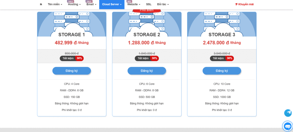 - Cloud VPS Storage → lưu trữ dữ liệu lớn, đáp ứng lượng truy cập cao.