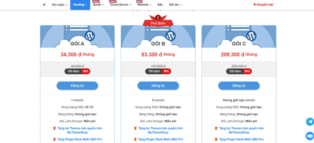 - Web Hosting hoặc WordPress Hosting gói cơ bản.