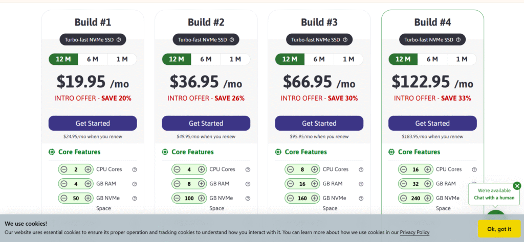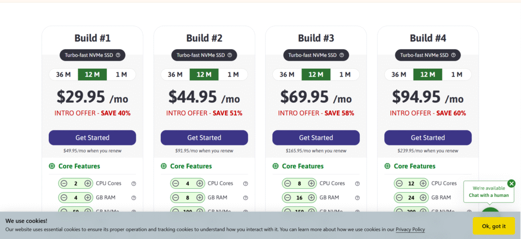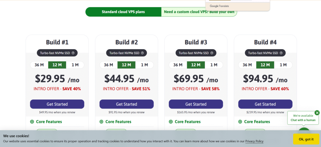 Mức giá: Từ ~$10.00/tháng (tùy cấu hình CPU/RAM chọn)