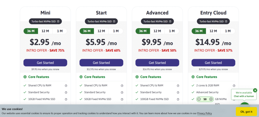 Mức giá: Từ ~$2.95/tháng (thanh toán 36 tháng)
