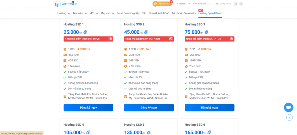 Review chi tiết các gói Hosting của Vietnix