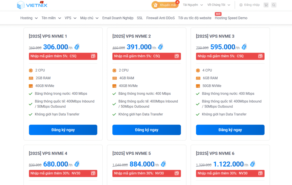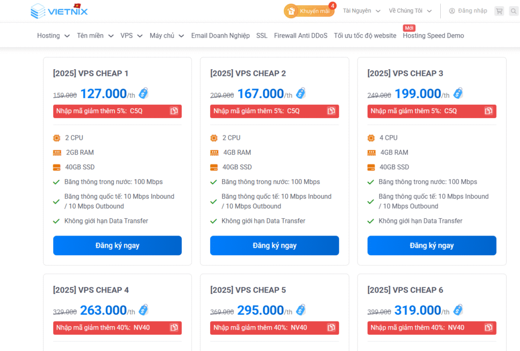 - Nếu bạn cần tài nguyên riêng biệt, hiệu năng cao và quyền quản trị toàn diện, VPS Vietnix với các gói VPS Giá Rẻ, VPS NVMe, VPS AMD, VPS GPU sẽ là lựa chọn phù hợp.