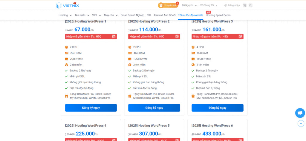 - Lợi ích: tối ưu cho WordPress, tốc độ tải <1 giây, backup 2 lần/ngày, bảo mật cao.