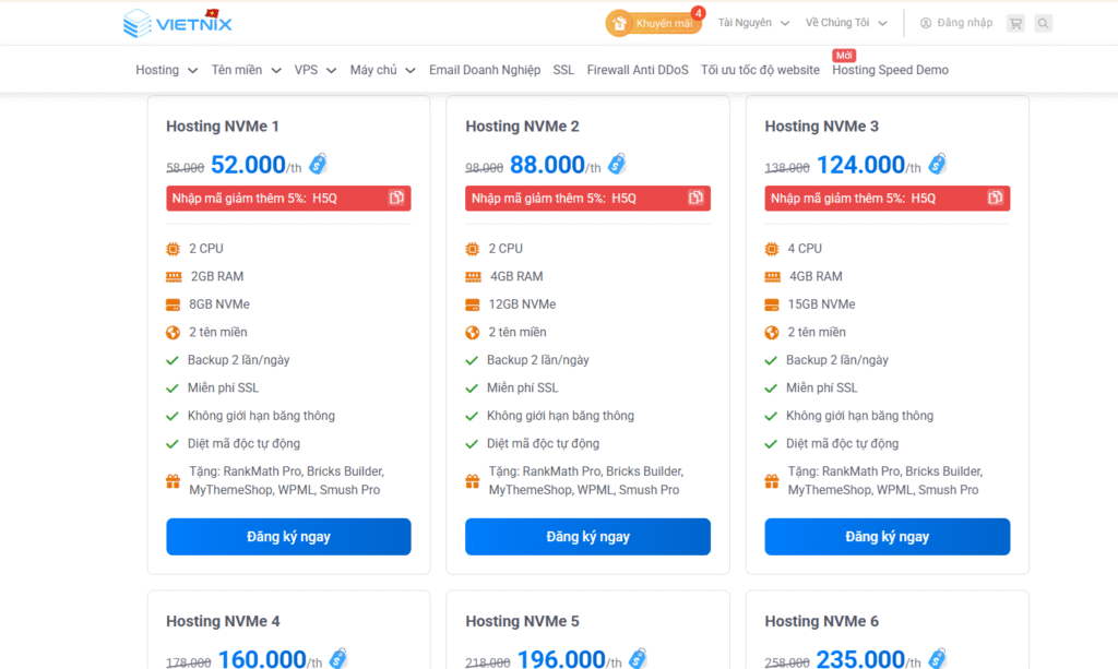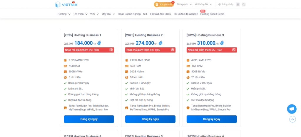 - Nếu bạn cần một giải pháp hosting ổn định, tốc độ nhanh, giá hợp lý và dễ sử dụng, Vietnix có Hosting Giá Rẻ, WordPress Hosting, Business Hosting, MaxSpeed Hosting, NVMe Hosting và SEO Hosting đáp ứng mọi nhu cầu.