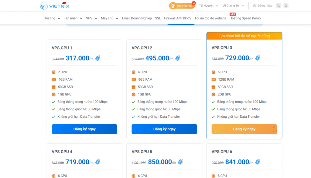 - VPS: VPS Giá Rẻ, VPS NVMe, VPS AMD, VPS GPU phục vụ AI/ML.