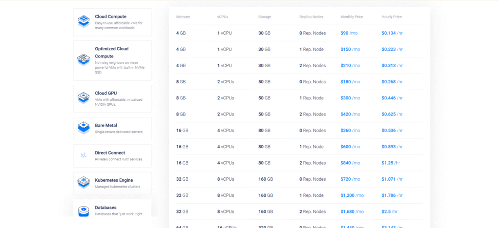 Vultr cung cấp hệ sinh thái dịch vụ Cloud đa dạng, phù hợp cho nhiều nhóm khách hàng khác nhau. Tùy theo mục tiêu và nhu cầu, bạn có thể chọn gói dịch vụ tối ưu như sau:
