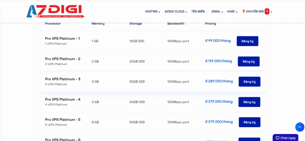 Các gói VPS/Cloud Server phổ biến: