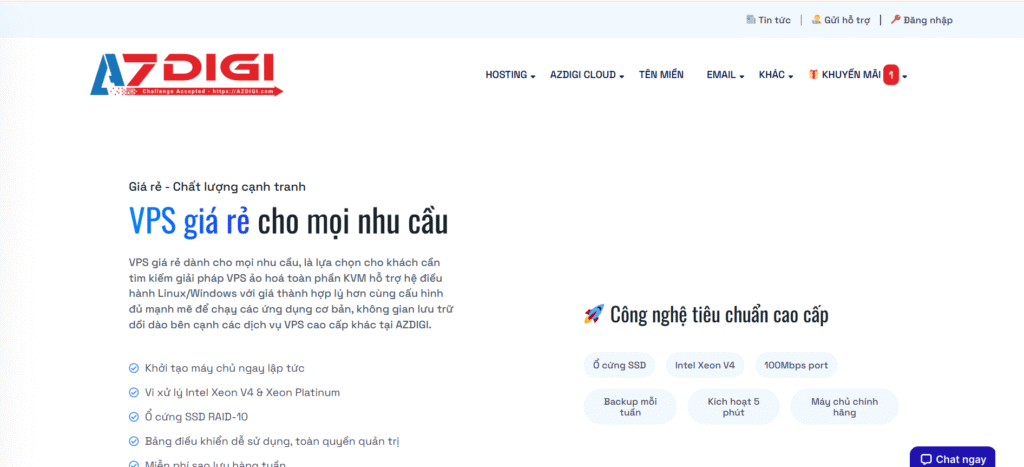 - AZDIGI giá mềm hơn, phù hợp cá nhân & SME mới bắt đầu với VPS.