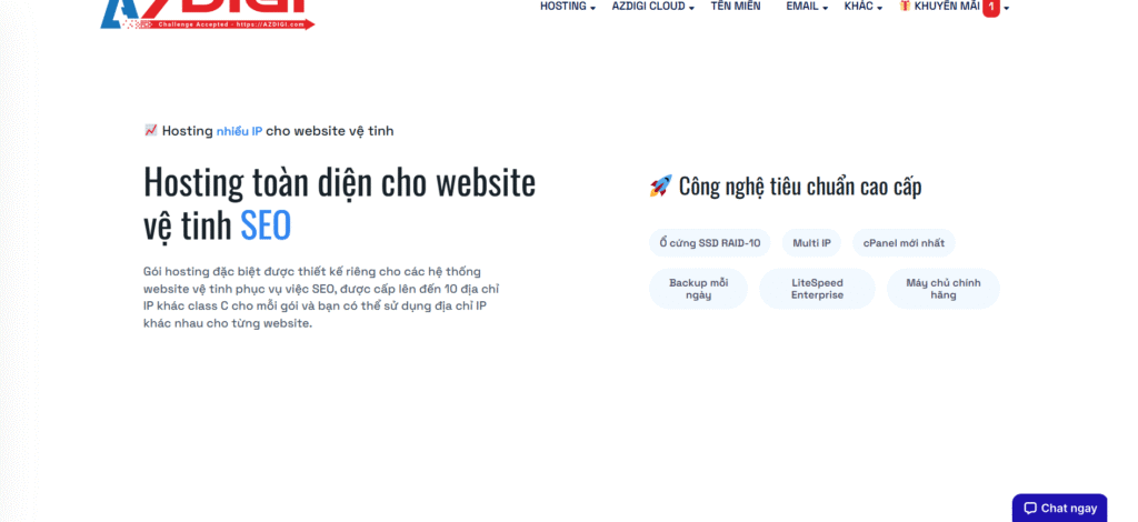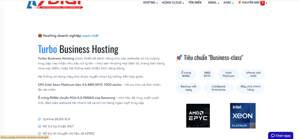 - AZDIGI mạnh cho dự án AI/Big Data, SaaS nhờ hạ tầng NVMe Gen4, Cloud HF, LiteSpeed.