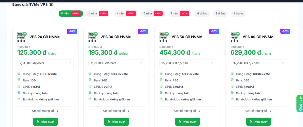 - Hạ tầng NVMe SSD Enterprise + CPU AMD/Intel mạnh, giá hợp lý.