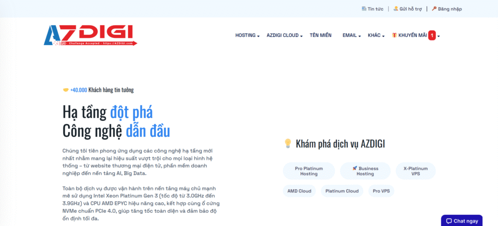 AZDIGI: Tập trung chủ yếu vào VPS/Cloud, ít gói Dedicated Server/Colocation cho doanh nghiệp lớn.