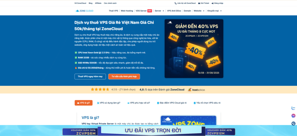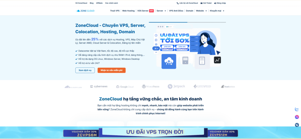 - ZoneCloud phù hợp dự án lớn, SaaS hoặc website có traffic cao, đảm bảo ổn định lâu dài.