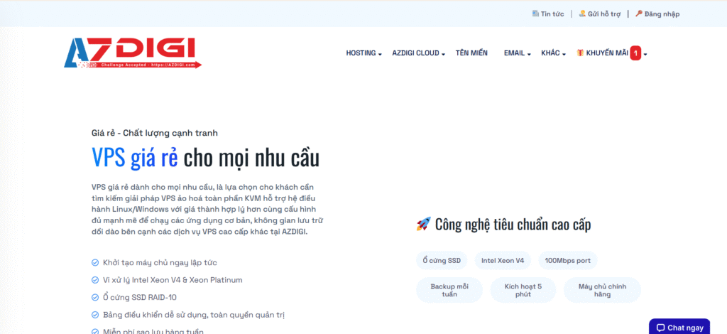 - AZDIGI: Giá hợp lý, phù hợp cá nhân & doanh nghiệp vừa, chi phí đầu tư thấp nhưng hiệu năng ổn định.