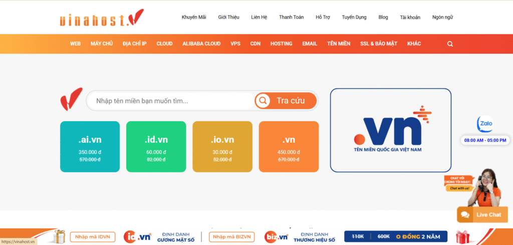 - VinaHost: Khuyến mãi định kỳ vào dịp lễ, combo SSL + Hosting giá tốt, hỗ trợ nâng cấp/mở rộng dễ dàng mà không downtime.