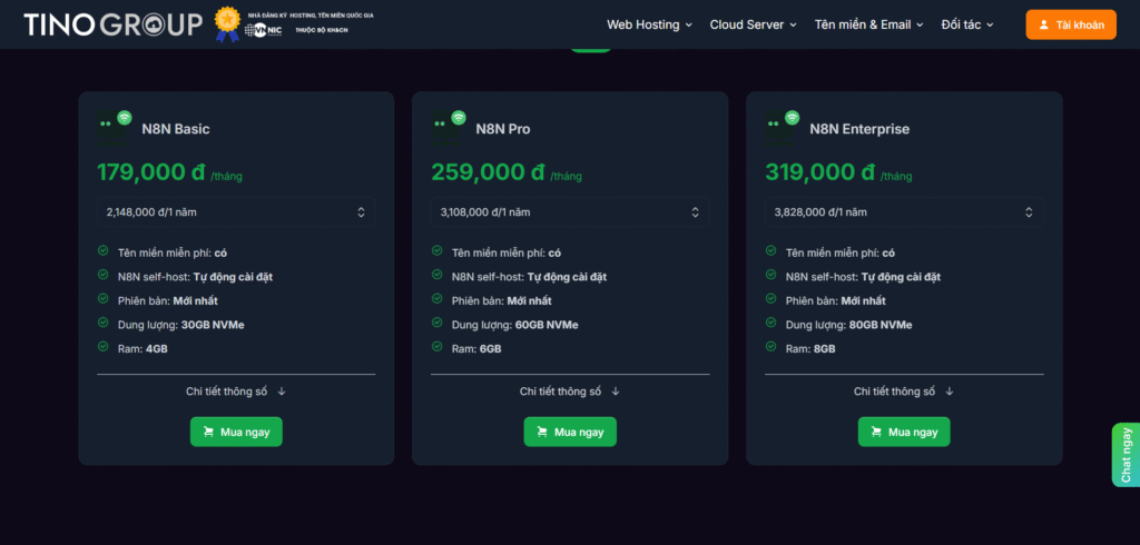 - Nếu bạn là cá nhân hoặc SME muốn dịch vụ nhanh, dễ dùng → TinoHost.