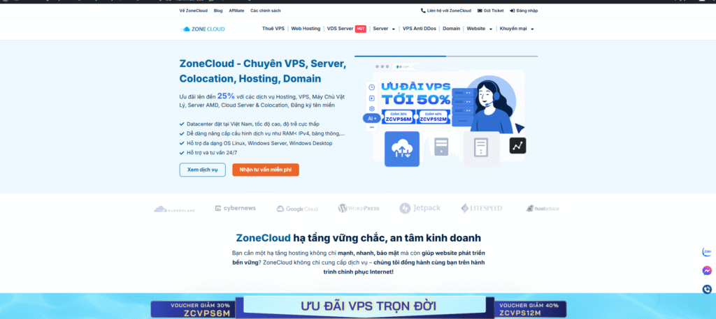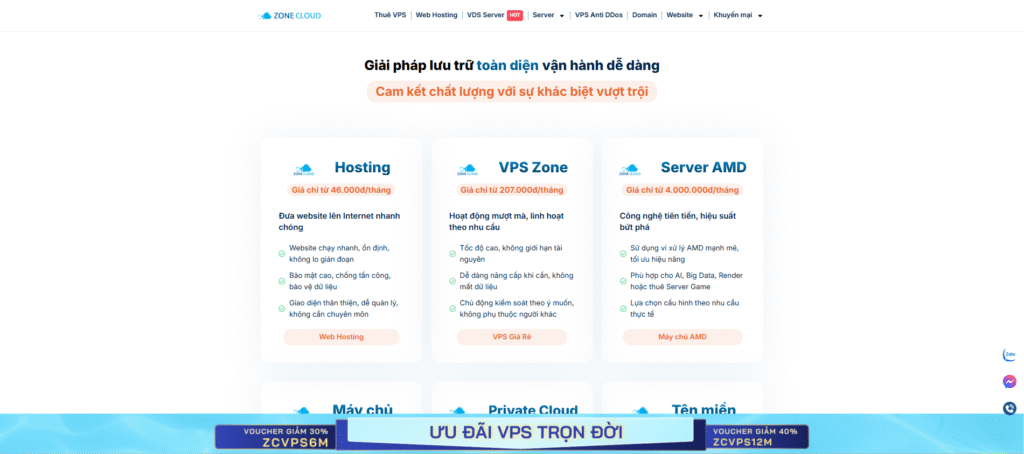 | Dự án lớn / SaaS / Game Online | ZoneCloud Cloud VPS, VPS Anti-DDoS, Dedicated Server, Bare Metal |