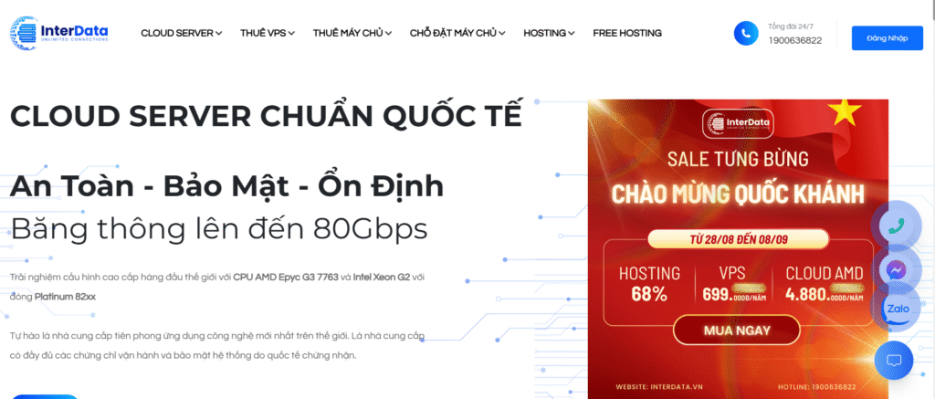 InterData là nhà cung cấp hạ tầng trung – cao cấp, được nhiều doanh nghiệp lớn tin tưởng. Tập trung vào giải pháp VPS, Cloud Server, Dedicated Server, Colocation và hạ tầng Private Cloud cho doanh nghiệp.