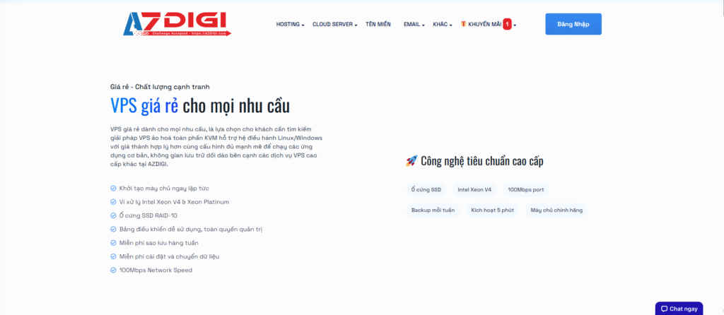 AZDIGI, do Thạch Phạm sáng lập, là thương hiệu nổi bật trong lĩnh vực VPS tốc độ cao tại Việt Nam. Dịch vụ của AZDIGI sử dụng SSD NVMe hiện đại, tối ưu tốc độ và độ ổn định, kết hợp với công nghệ ảo hóa KVM để đảm bảo tài nguyên riêng biệt. Hỗ trợ kỹ thuật 24/7, chính sách dùng thử 7 ngày miễn phí và giá thành cạnh tranh giúp AZDIGI trở thành lựa chọn lý tưởng cho nhiều đối tượng.